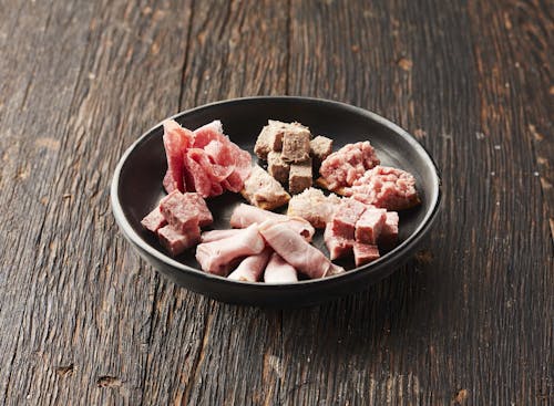 - Snijd de charcuterie in fijne stukjes of blokjes naar eigen keuze
